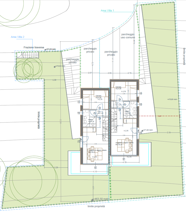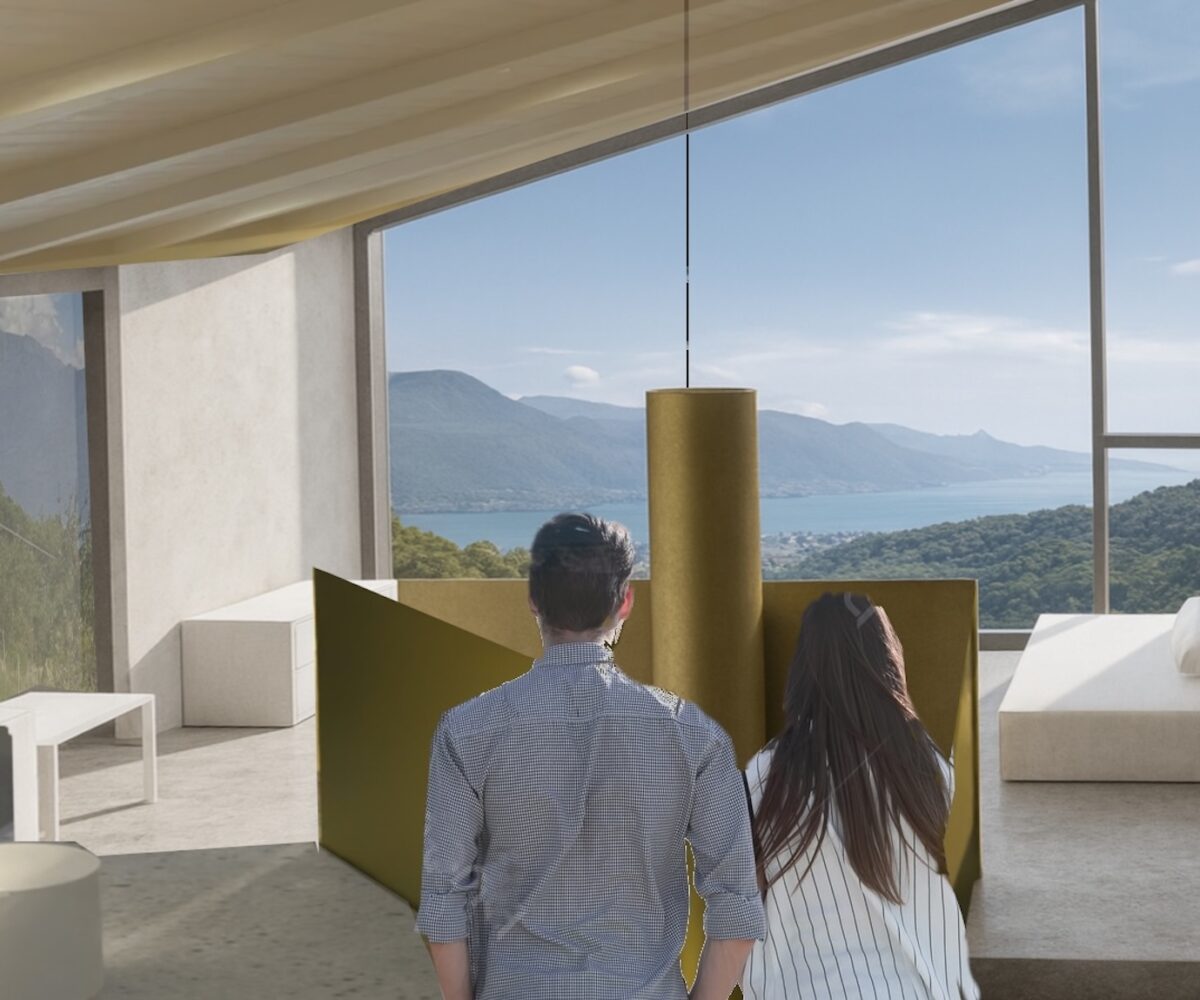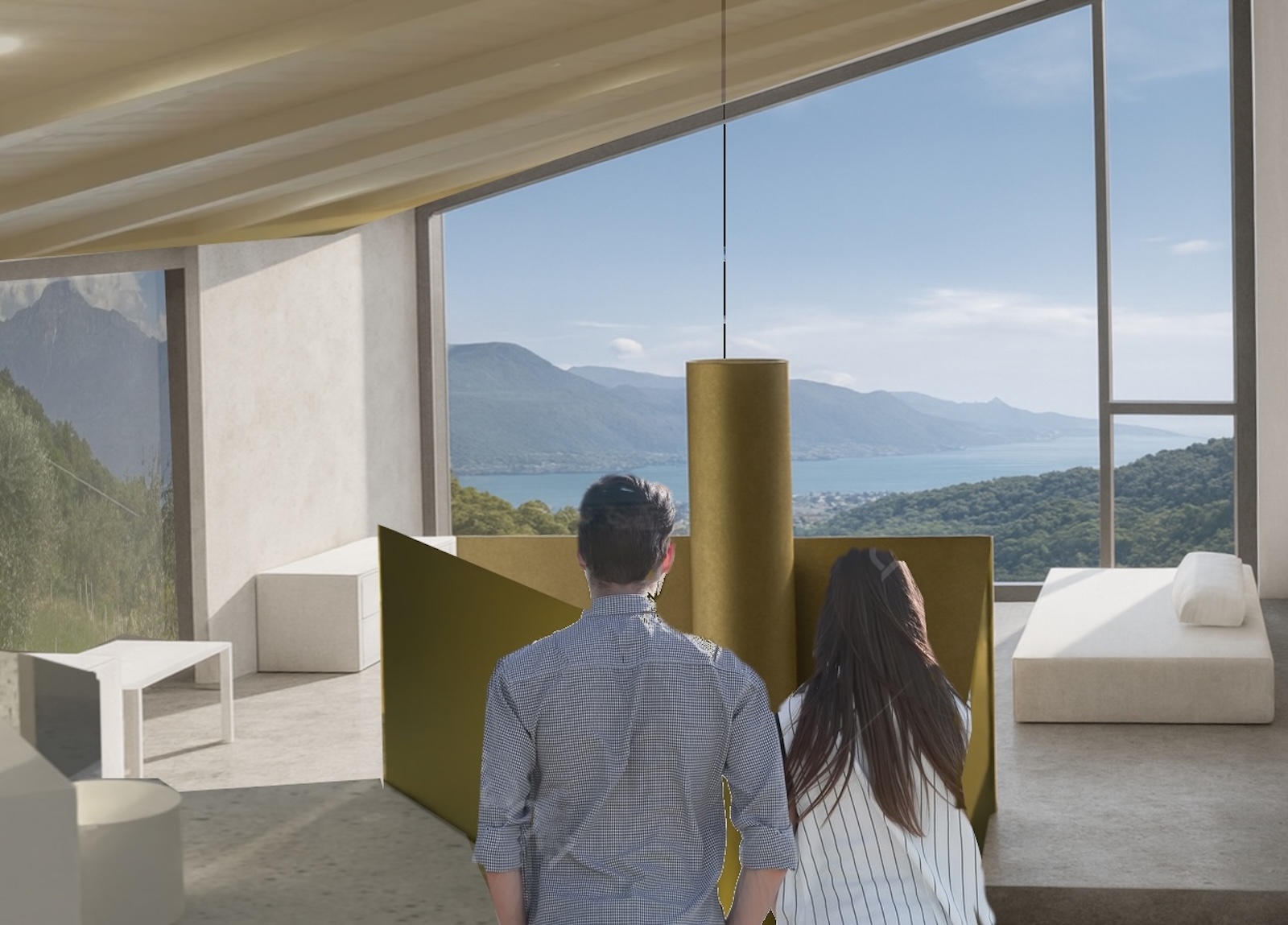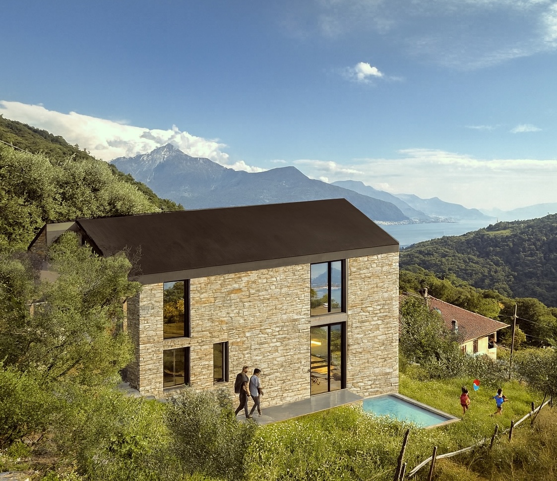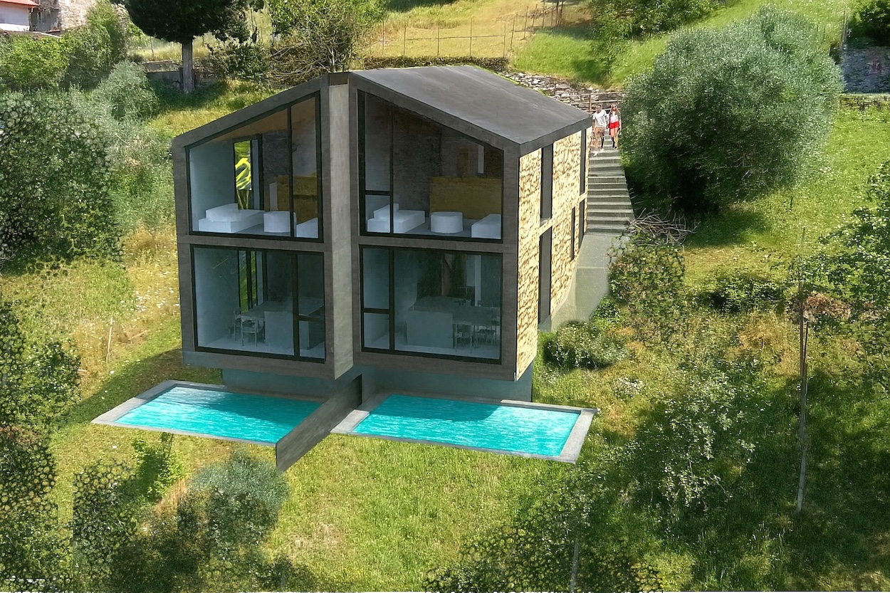 On the northern shore of Lake Como, in the beautiful Gravedona, a semi-detached villa with two residential units will be built in a panoramic and dominant position overlooking the lake.