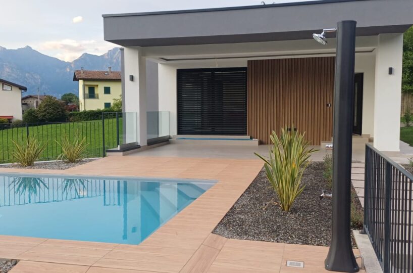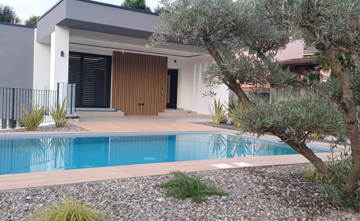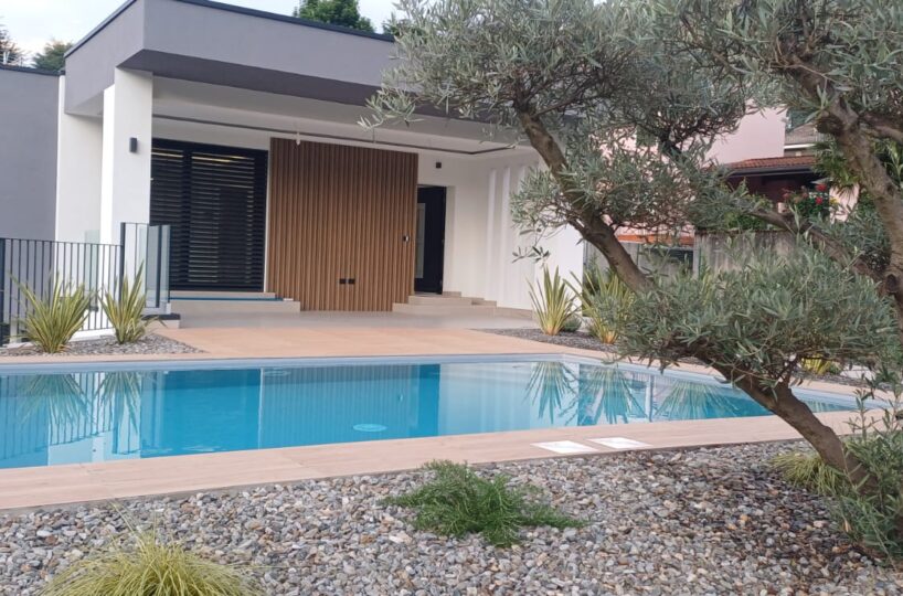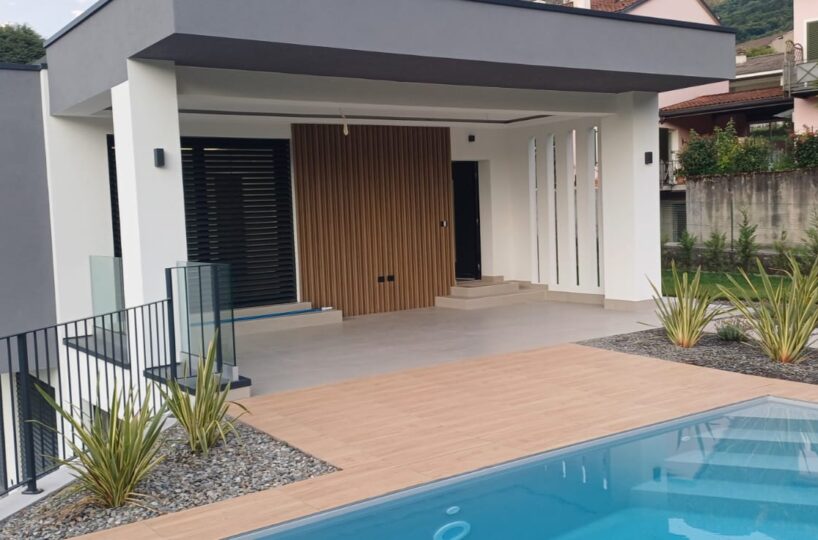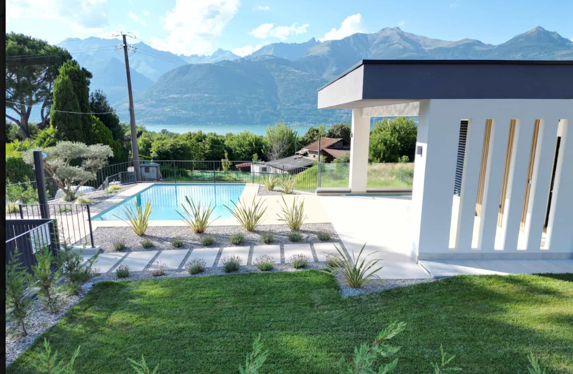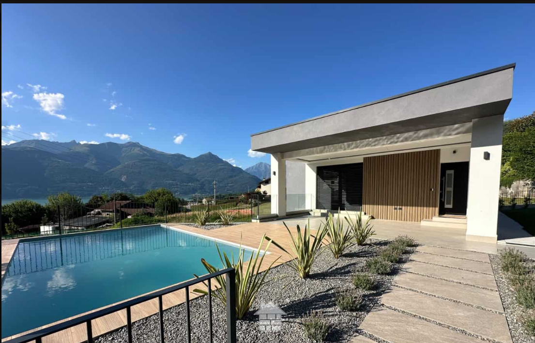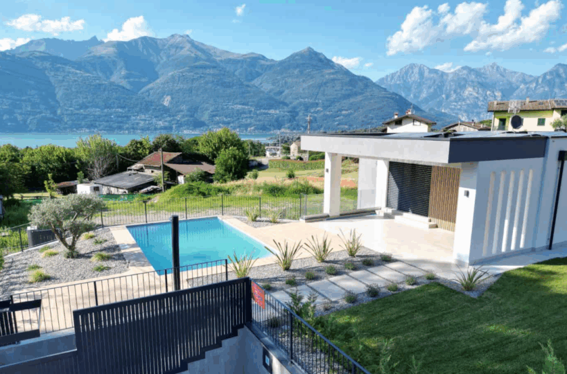 In Colico, in a quiet and private area, close to service centers and major roads, we offer for sale a newly built villa with a modern design, home automation systems, and a large garden and swimming pool/solarium with stunning lake and panoramic views.