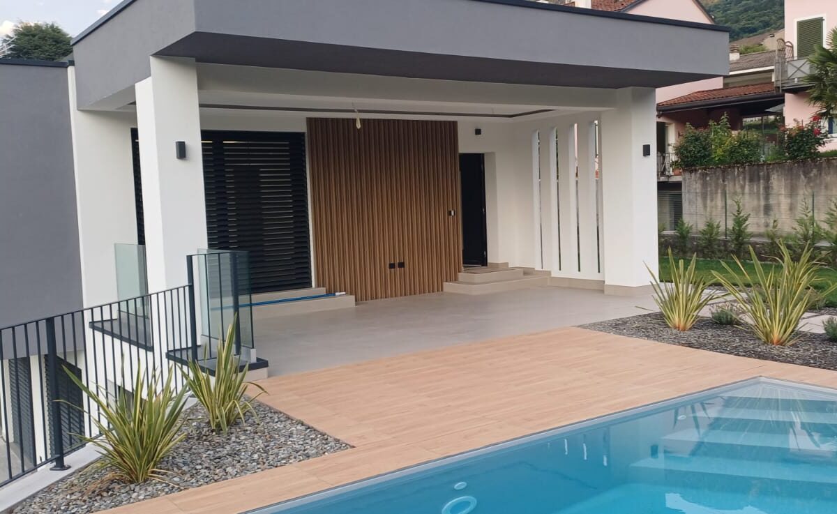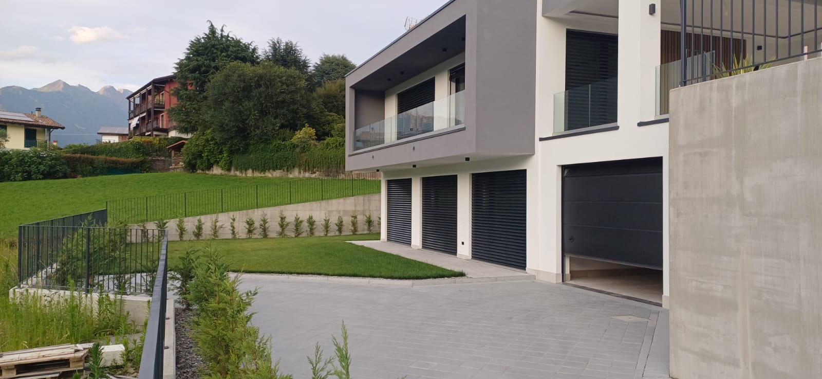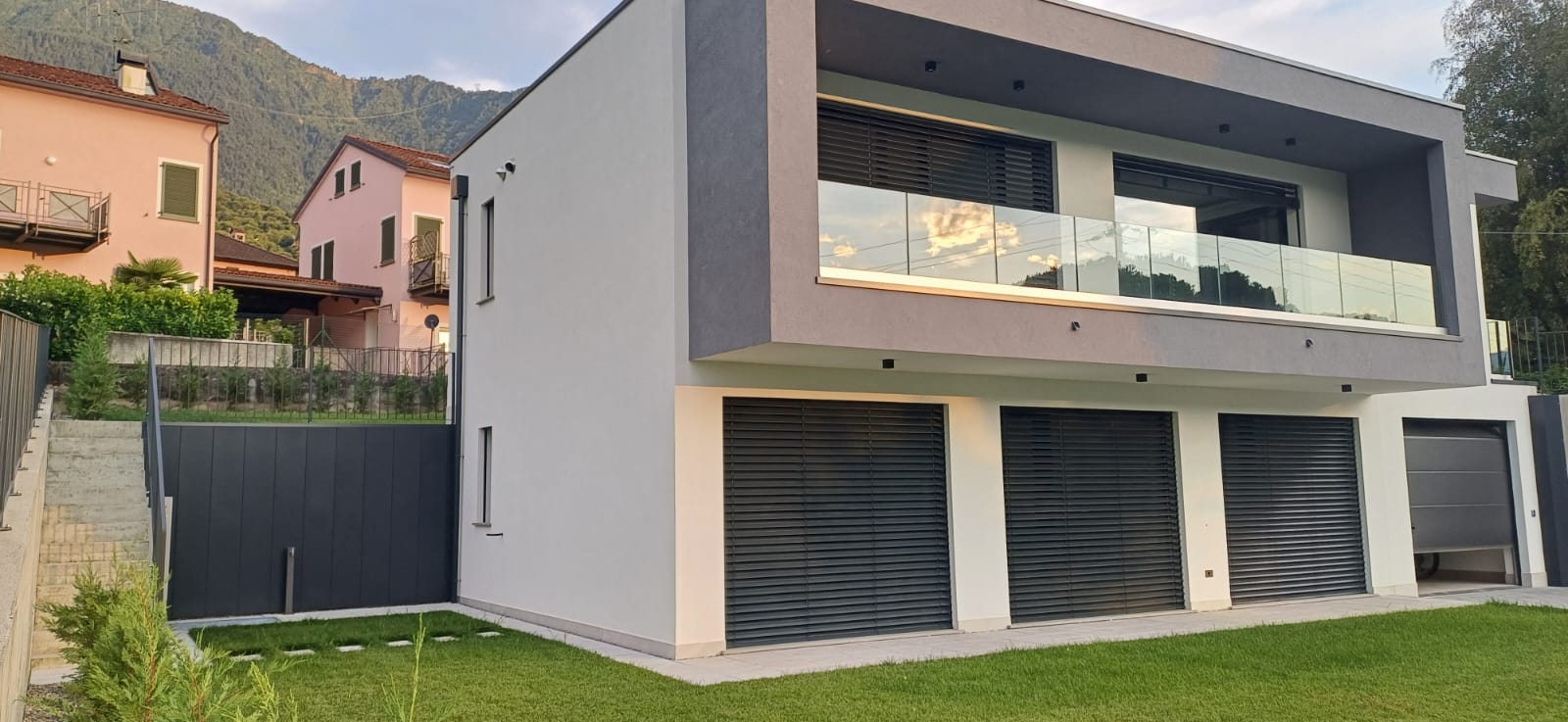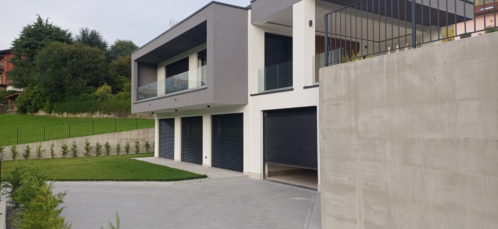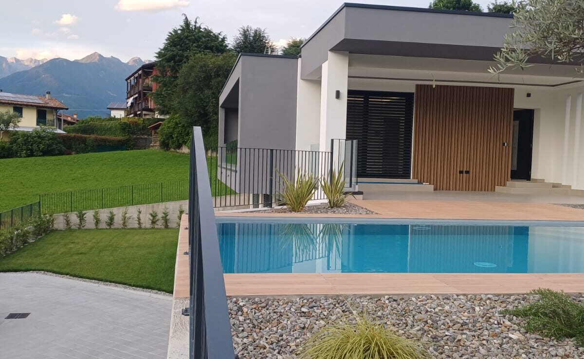 In Colico, in a quiet and private area, close to service centers and major roads, we offer for sale a newly built villa with a modern design, home automation systems, and a large garden and swimming pool/solarium with stunning lake and panoramic views.