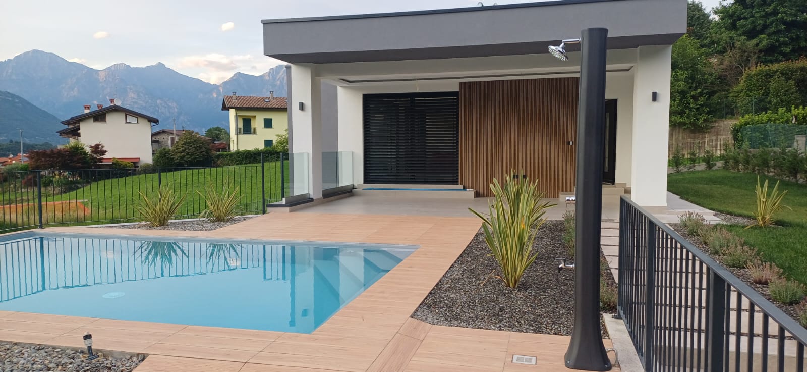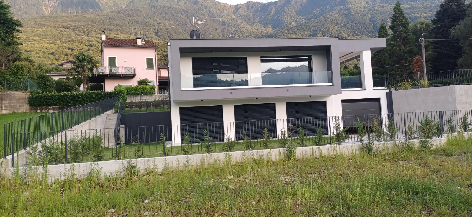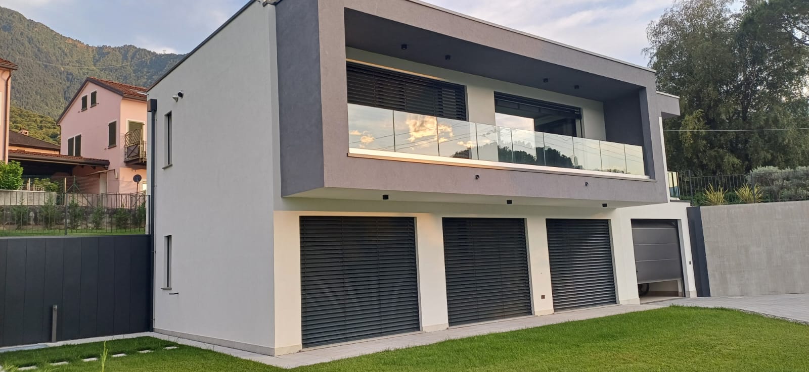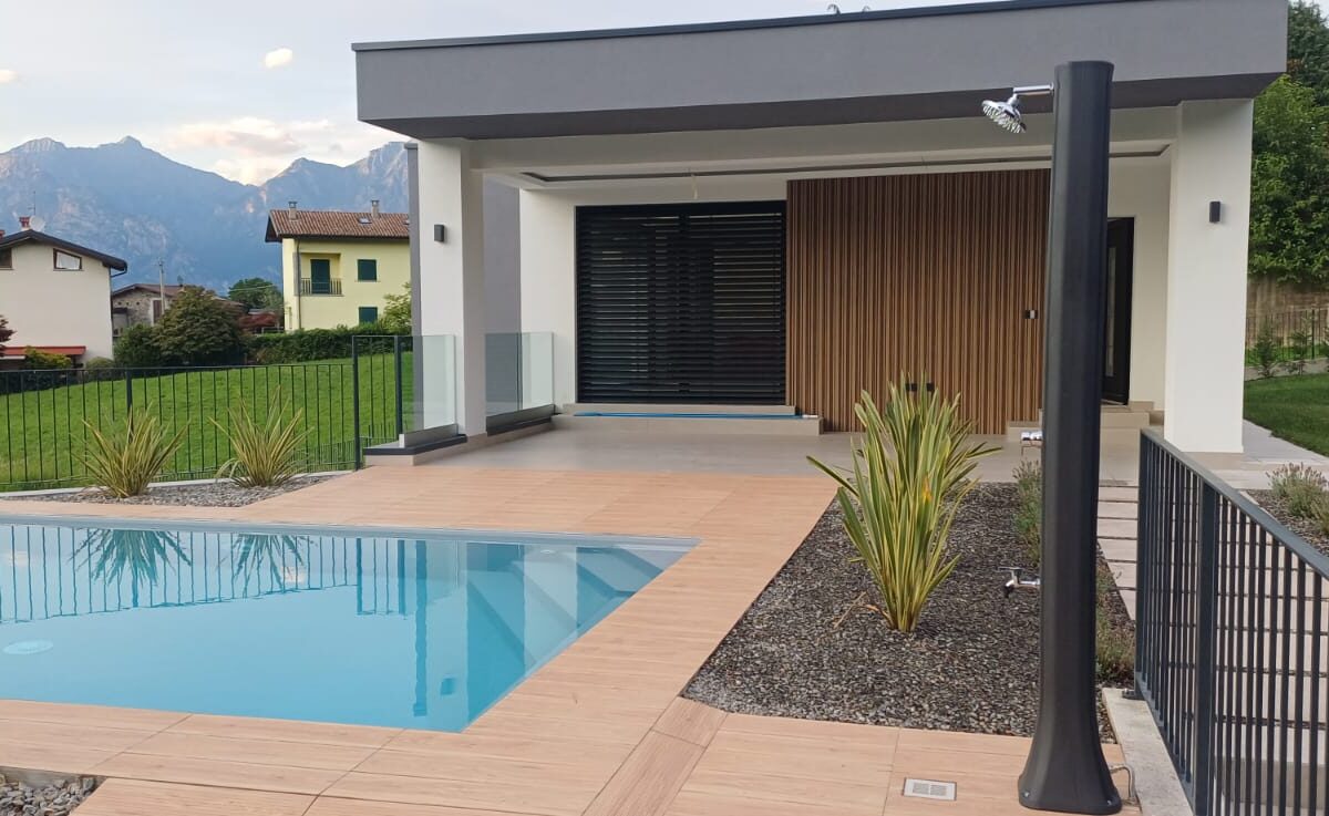 In Colico, in a quiet and private area, close to service centers and major roads, we offer for sale a newly built villa with a modern design, home automation systems, and a large garden and swimming pool/solarium with stunning lake and panoramic views.