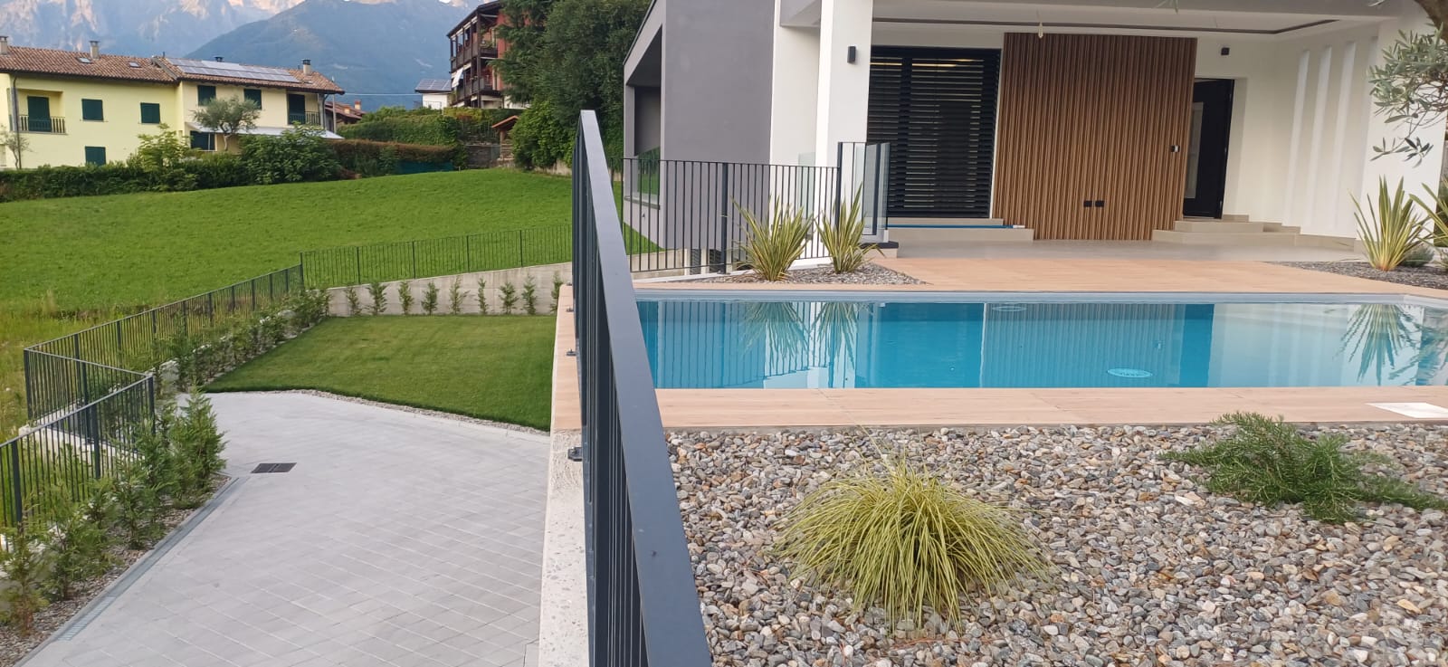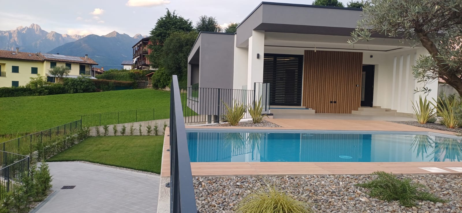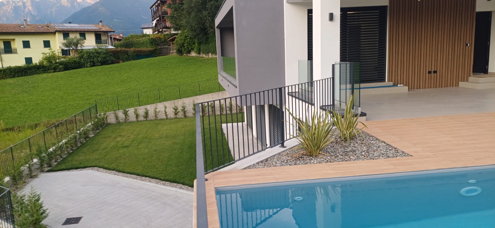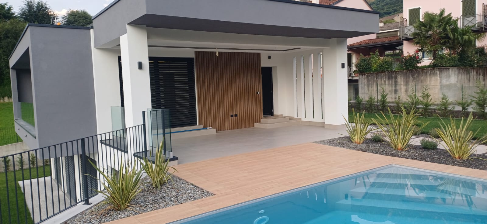 In Colico, in a quiet and private area, close to service centers and major roads, we offer for sale a newly built villa with a modern design, home automation systems, and a large garden and swimming pool/solarium with stunning lake and panoramic views.