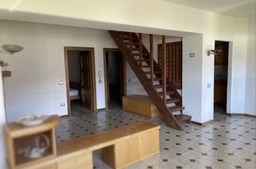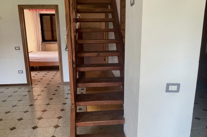 L’immobile è strutturato su tre livelli; al piano terra ampia e luminosa taverna con cantina/ripostiglio retrostante; si accede al piano primo con scala esterna, pianerottolo d’ingresso, soggiorno ampio e luminoso, cucinotto, disimpegno, bagno e due camere matrimoniali, scala interna in legno che porta la piano superiore;